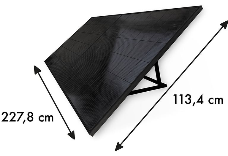 SOLARPRO® est une station solaire plug & play au format grand panneau : 2340 × 1134 × 70 mm pour 38 kg, intégrant un module jusqu’à 640 Wc associé à un micro-onduleur 800 W. Elle s’appuie sur 144 cellules monocristallines(technologie 9BB pour limiter les risques de microfissures) et une conception bi-verre bifaciale.